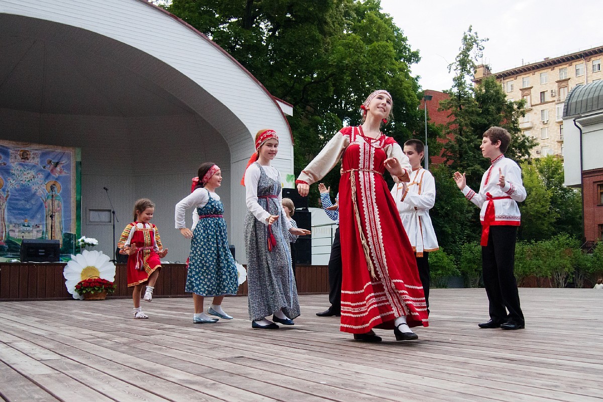 А какое веселье началось, когда на сцене появились дети из общества многодетных православных семей «Вербочка»! Под руководством преподавателя школы танца «Ромашковый вальс» Александра Аношкина дети исполнили исторические танцы: «Архангельские топотушки» и кадриль..